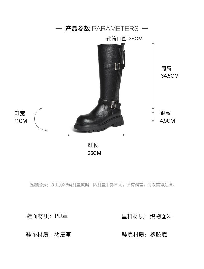 | 配跟:无 | 靴筒口围:39CM | 上市时间:2025年冬季 | 鞋类流行款式:骑士靴 | 鞋头款式:圆头 |