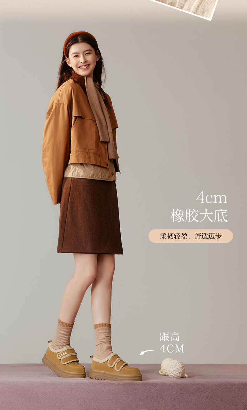 | 色系:棕色 | 跟高数值:4CM | 性别:女子 | 里料材质:人造长毛绒 | 制鞋工艺:胶贴皮鞋 |