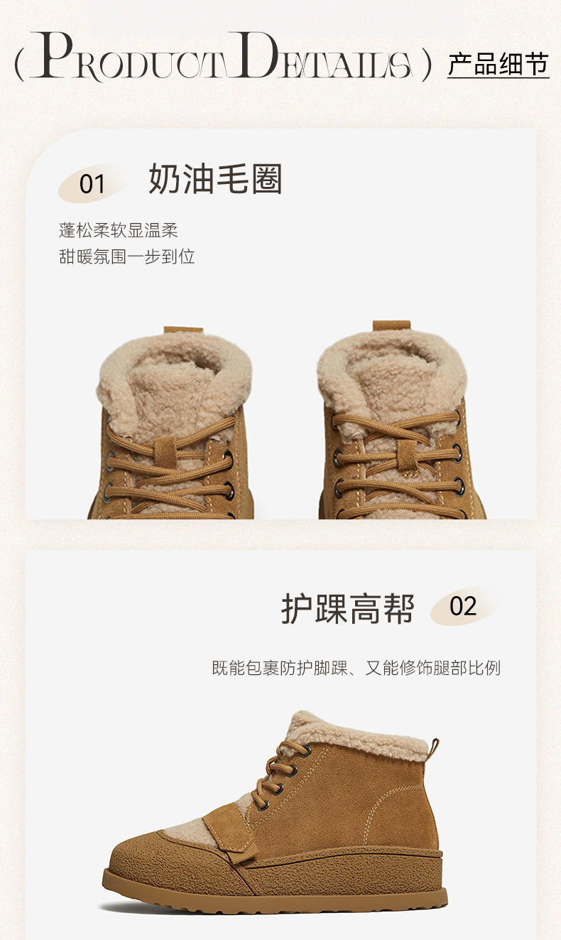 | 帮面材质:织物牛剖层革 | 配跟:无 | 靴筒口围:28CM | 上市时间:2025年冬季 | 鞋类流行款式:深口鞋 |