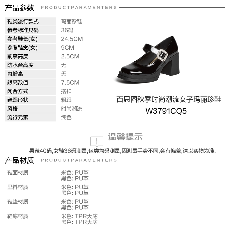 | 皮质特征:无 | 前掌高度:2.5CM | 防水台高度:无 | 鞋类流行款式:玛丽珍鞋 |