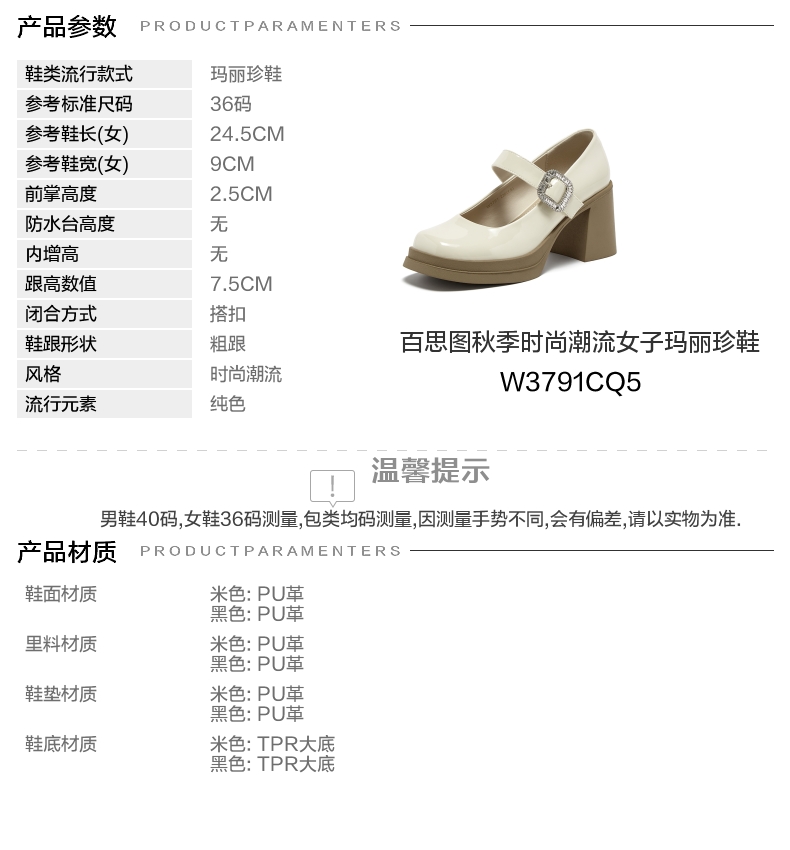 | 皮质特征:无 | 前掌高度:2.5CM | 防水台高度:无 | 鞋类流行款式:玛丽珍鞋 |
