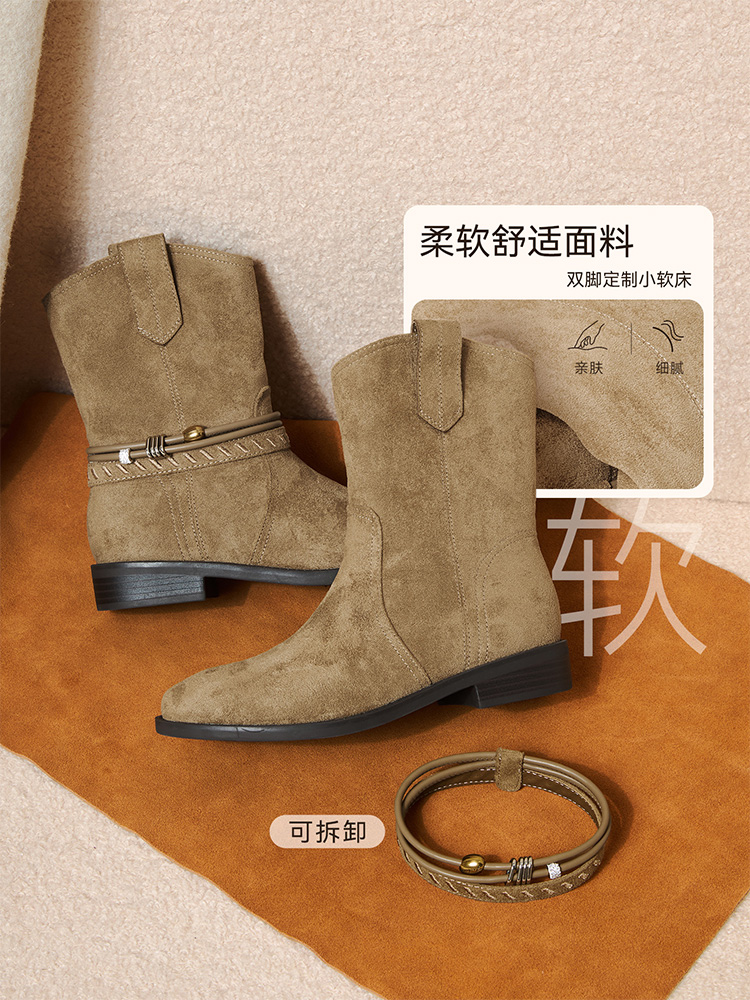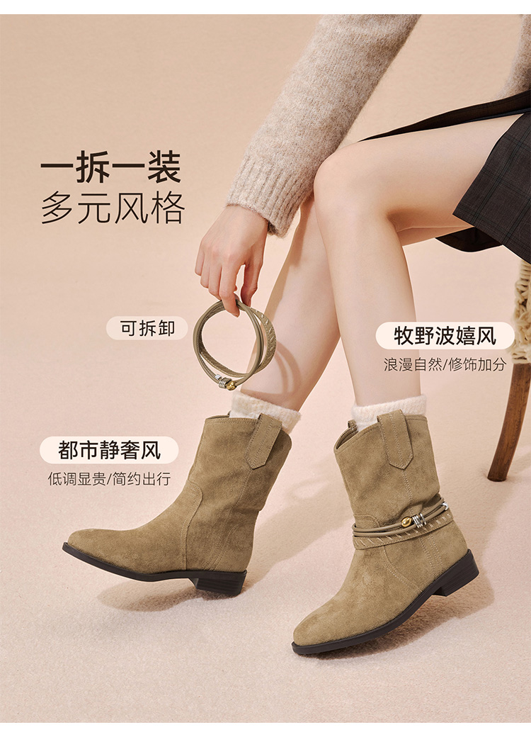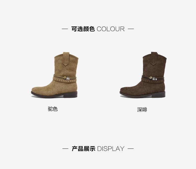 | 帮面材质:织物 | 配跟:无 | 靴筒口围:32CM | 上市时间:2025年冬季 | 鞋类流行款式:西部靴 |