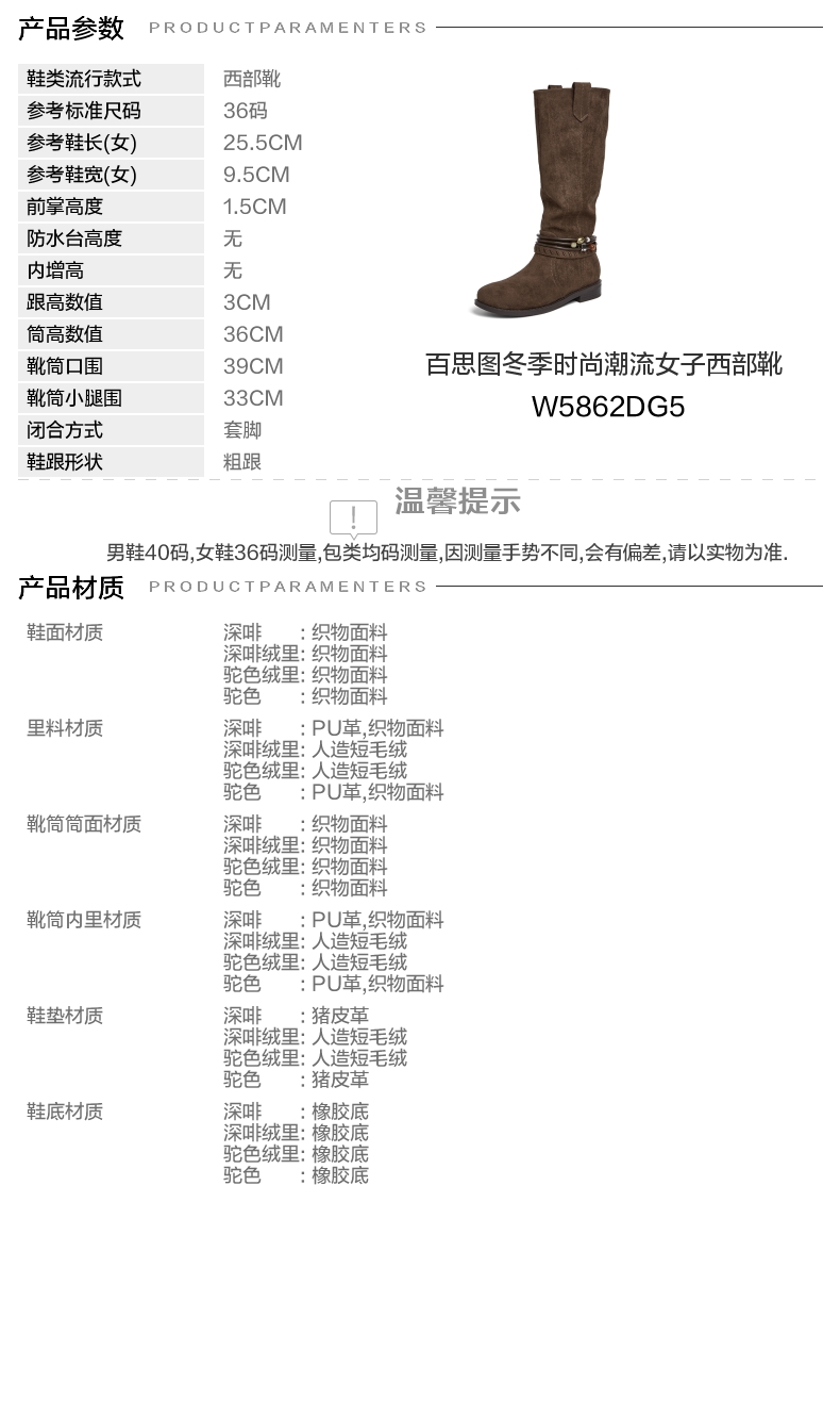 | 配跟:无 | 靴筒口围:39CM | 上市时间:2025年冬季 | 鞋类流行款式:西部靴 | 鞋头款式:圆头 |