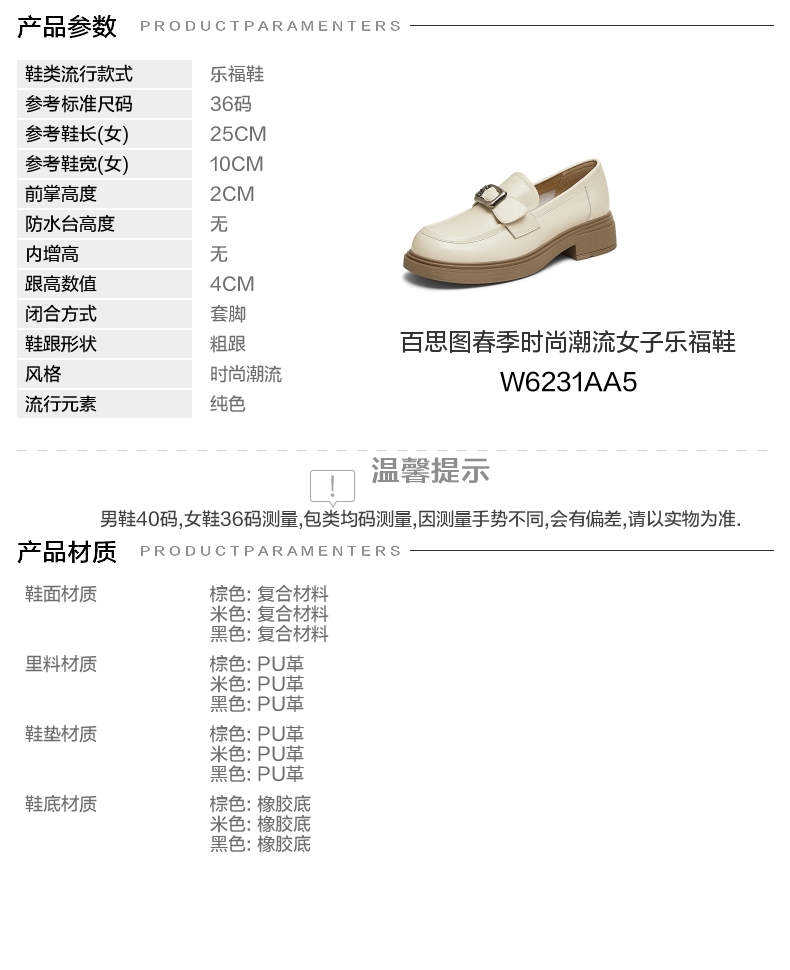 | 色系:米色 | 参考标准尺码:36码 | 跟高数值:4CM | 性别:女子 | 里料材质:PU革 |