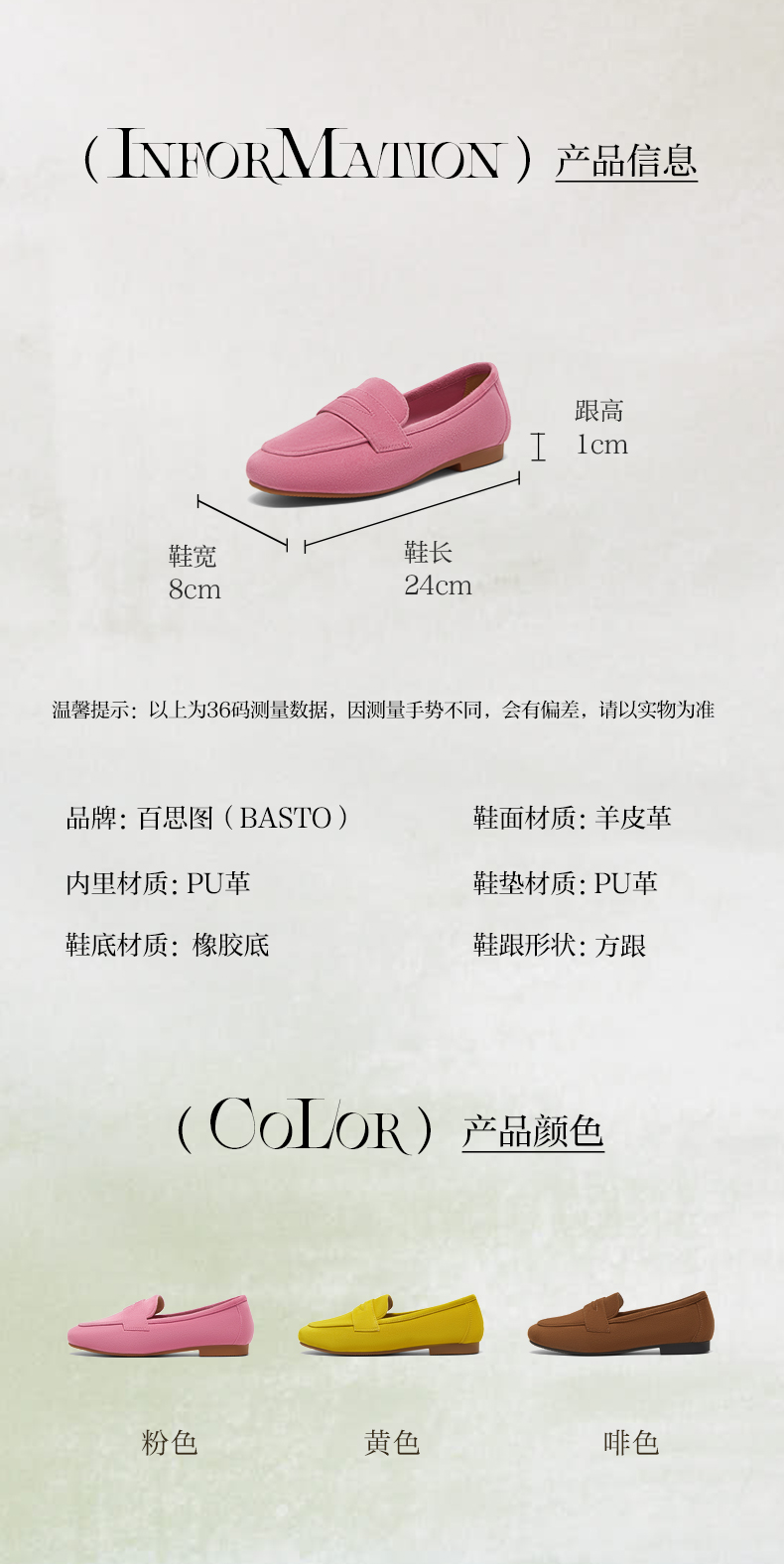 | 色系:啡色 | 参考标准尺码:36码 | 跟高数值:1CM | 性别:女子 | 里料材质:PU革 |