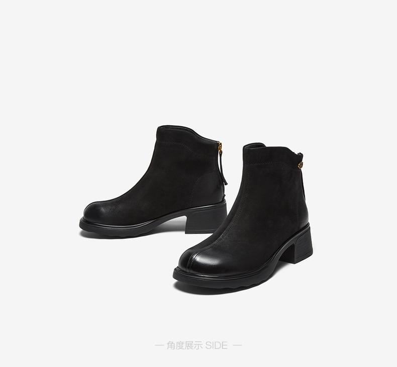 | 鞋底材质:橡胶底 | 靴筒内里材质:人造短毛绒 | 内增高:无 | 鞋面材质:羊皮革 | 闭合方式:后拉链 |