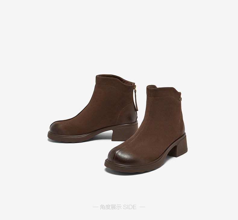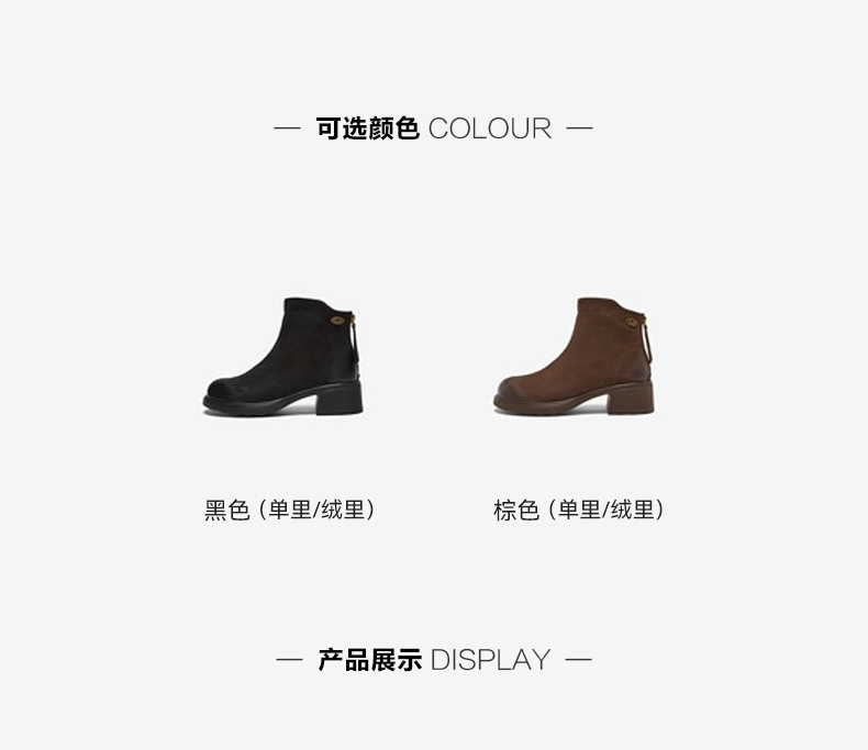 | 鞋底材质:橡胶底 | 靴筒内里材质:织物面料猪皮革 | 内增高:无 | 鞋面材质:羊皮革 | 闭合方式:后拉链 |