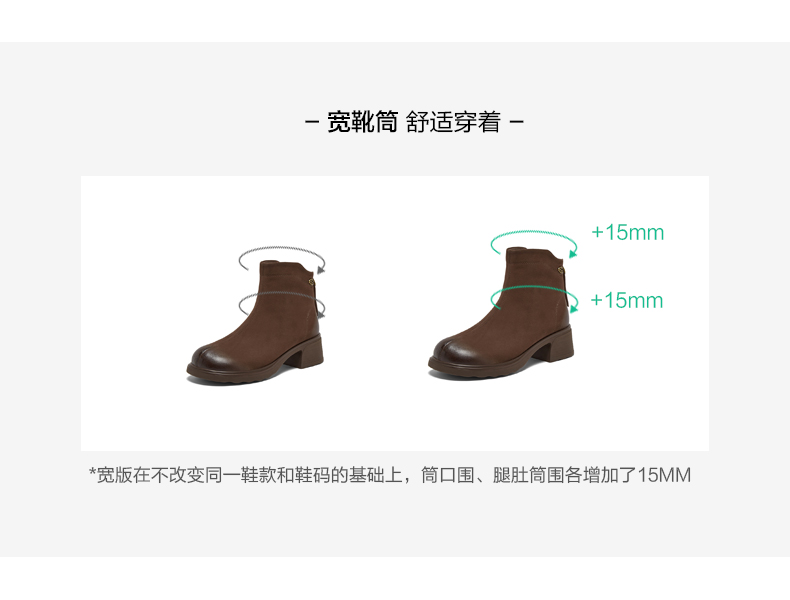| 鞋底材质:橡胶底 | 靴筒内里材质:织物面料猪皮革 | 内增高:无 | 鞋面材质:羊皮革 | 闭合方式:后拉链 |