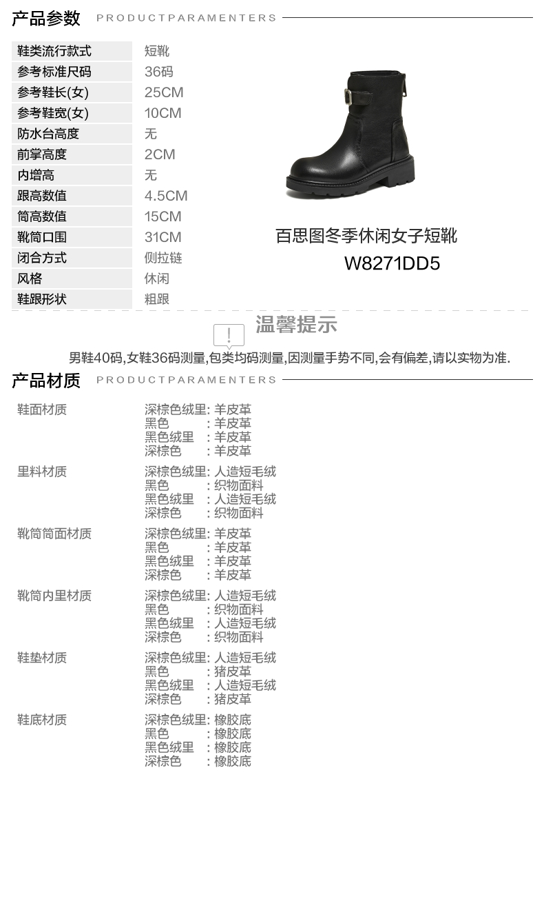| 帮面材质:羊皮革 | 配跟:无 | 靴筒口围:31CM | 上市时间:2025年冬季 | 鞋类流行款式:短靴 |