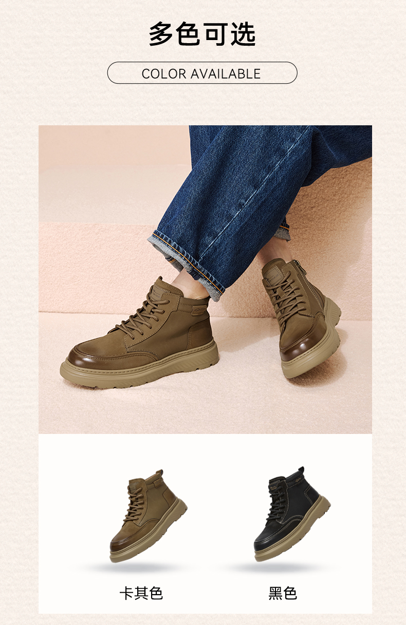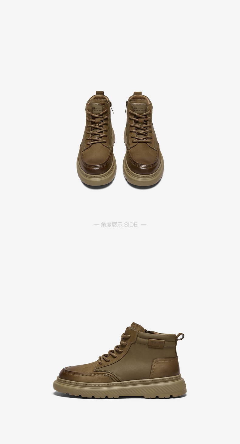 | 跟高数值:4CM | 色系:卡其 | 性别:男子 | 筒高数值:13.5CM | 靴筒筒面材质:复合材料牛皮革 |