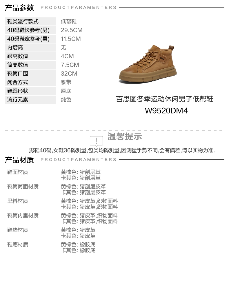 | 闭合方式:系带 | 40码鞋宽参考(男):11.5CM | 靴筒口围:32CM | 上市时间:2024年冬季 | 鞋类流行款式:低帮鞋 |