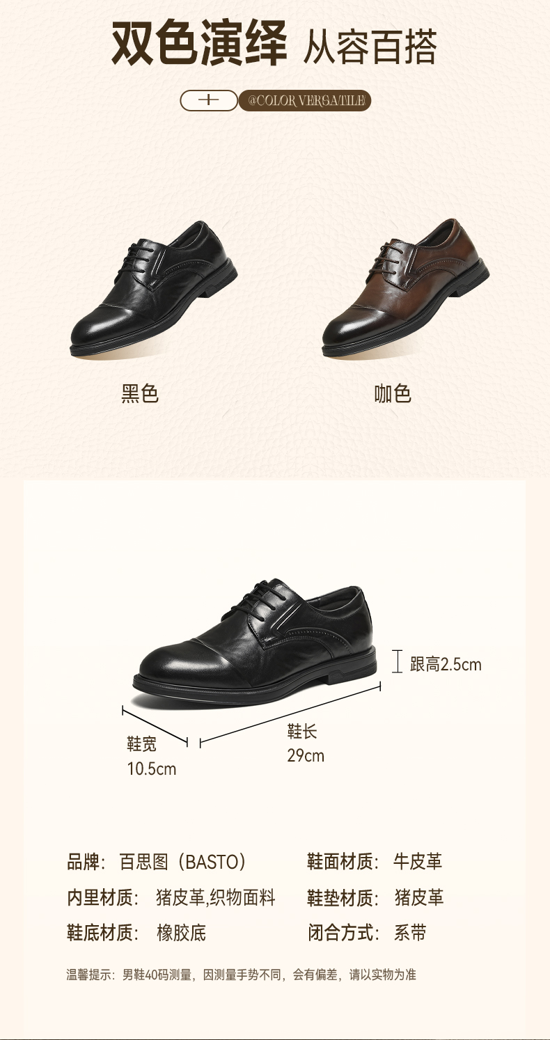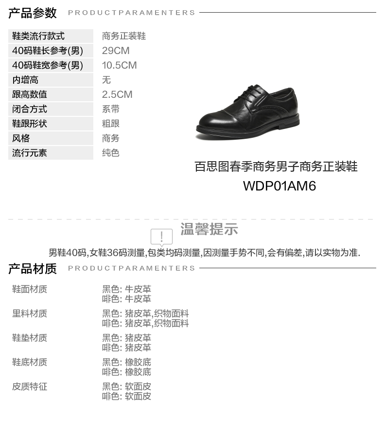 | 风格:商务 | 色系:黑色 | 跟高数值:2.5CM | 40码鞋宽参考(男):10.5CM | 性别:男子 |