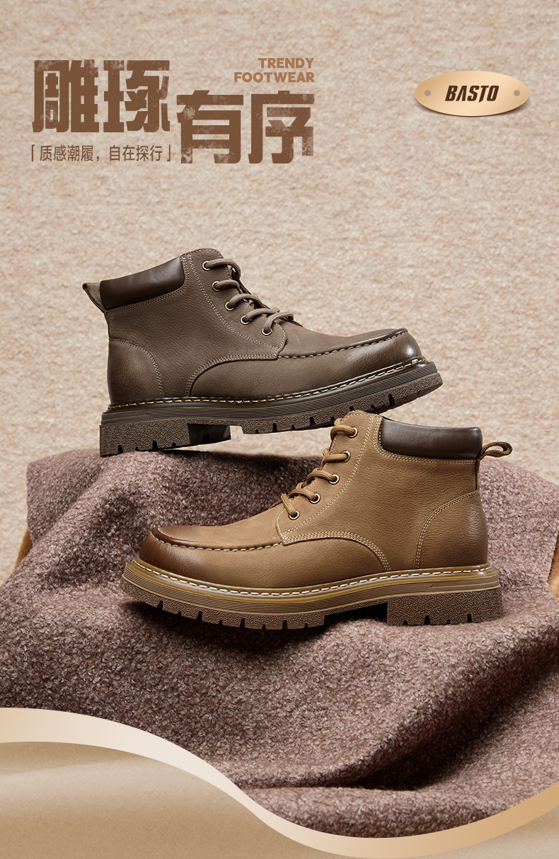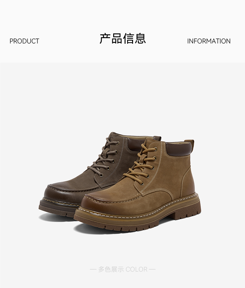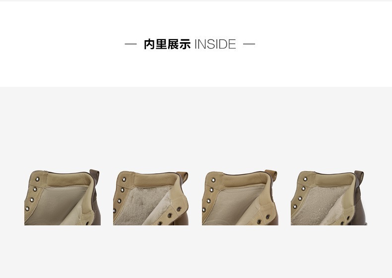 | 鞋面内里材质:猪皮革 | 跟高数值:4CM | 色系:卡其 | 性别:男子 | 筒高数值:10CM |