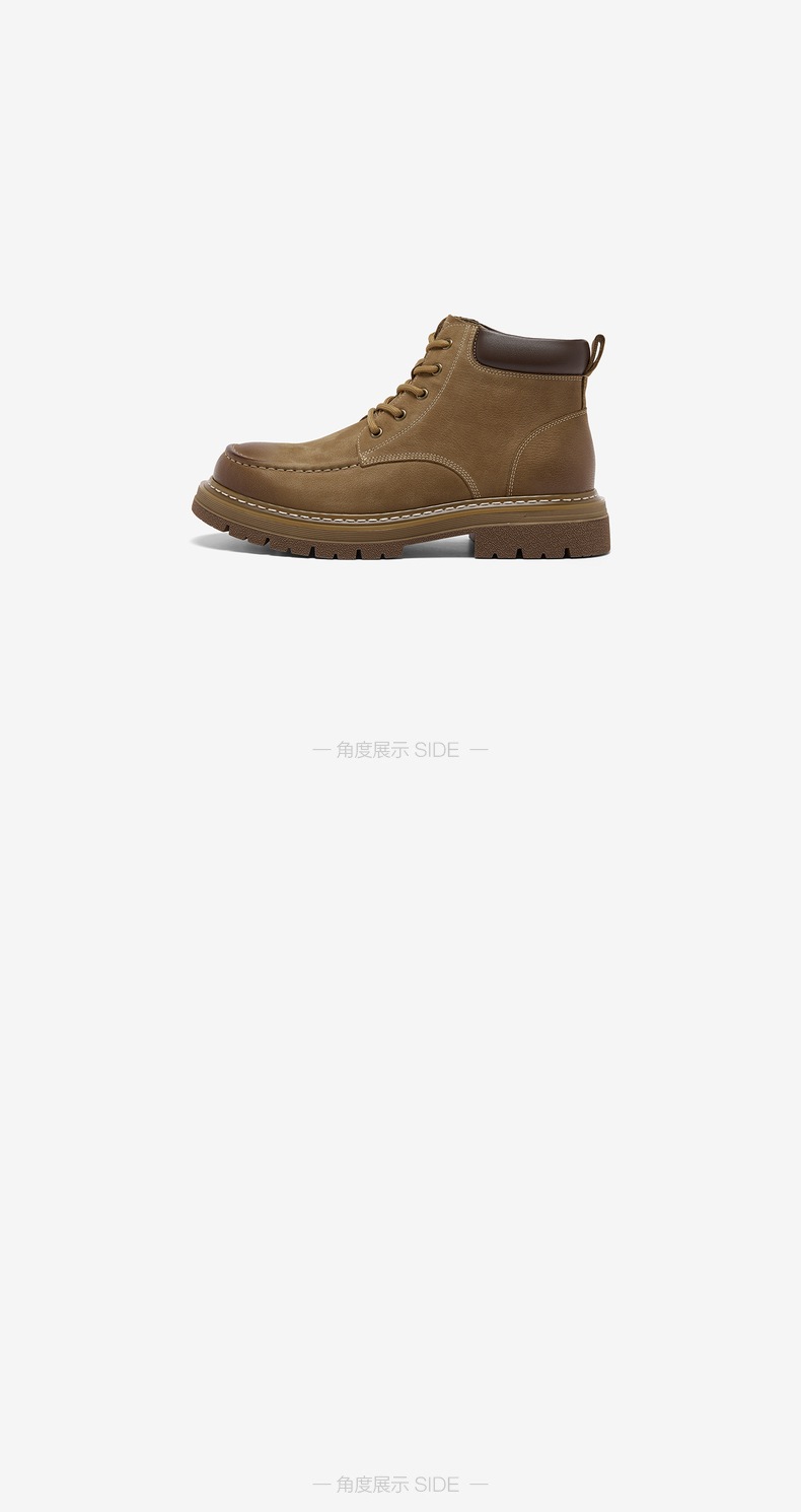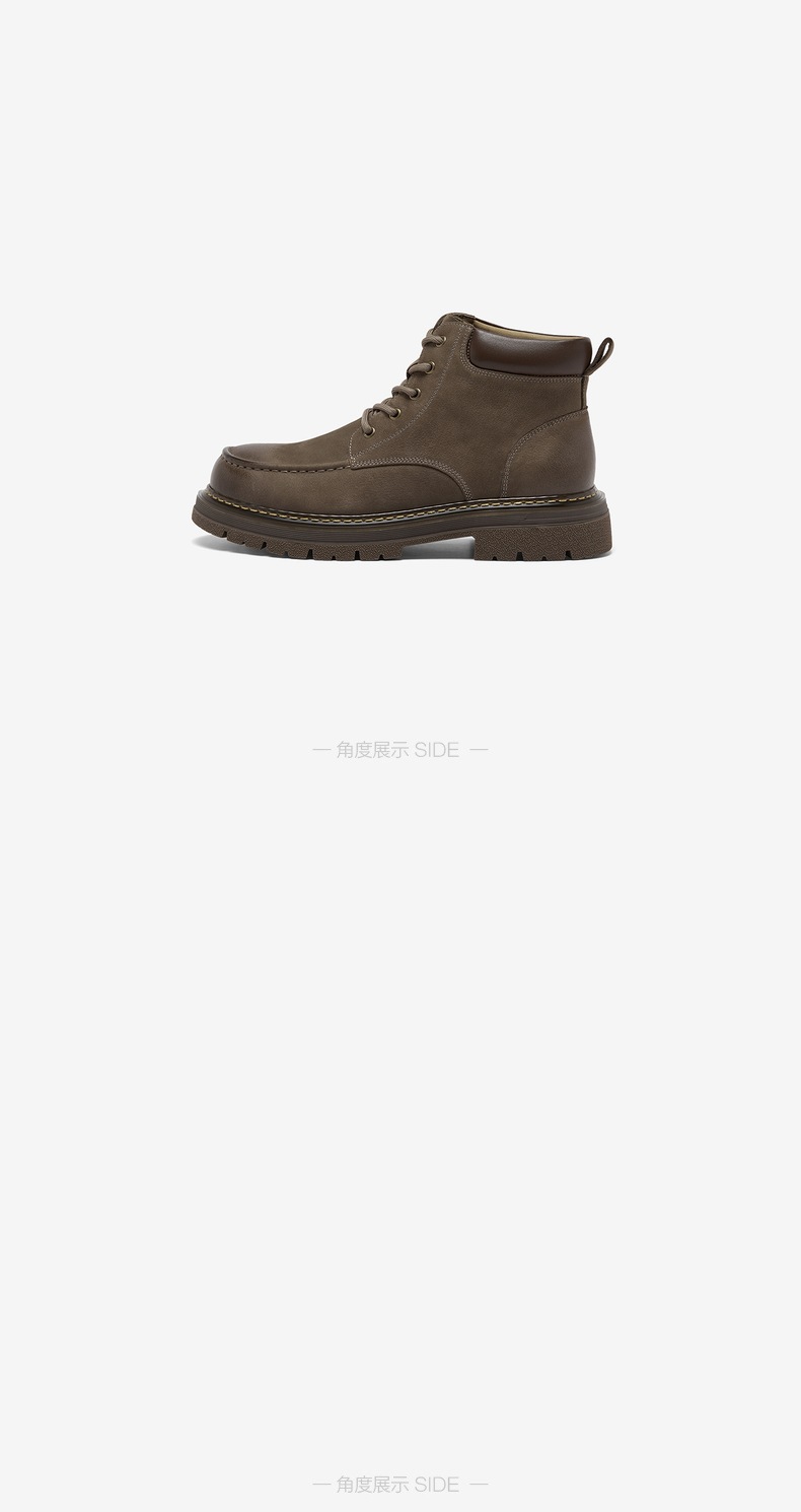 | 鞋面内里材质:猪皮革 | 跟高数值:4CM | 色系:棕色 | 性别:男子 | 筒高数值:10CM |