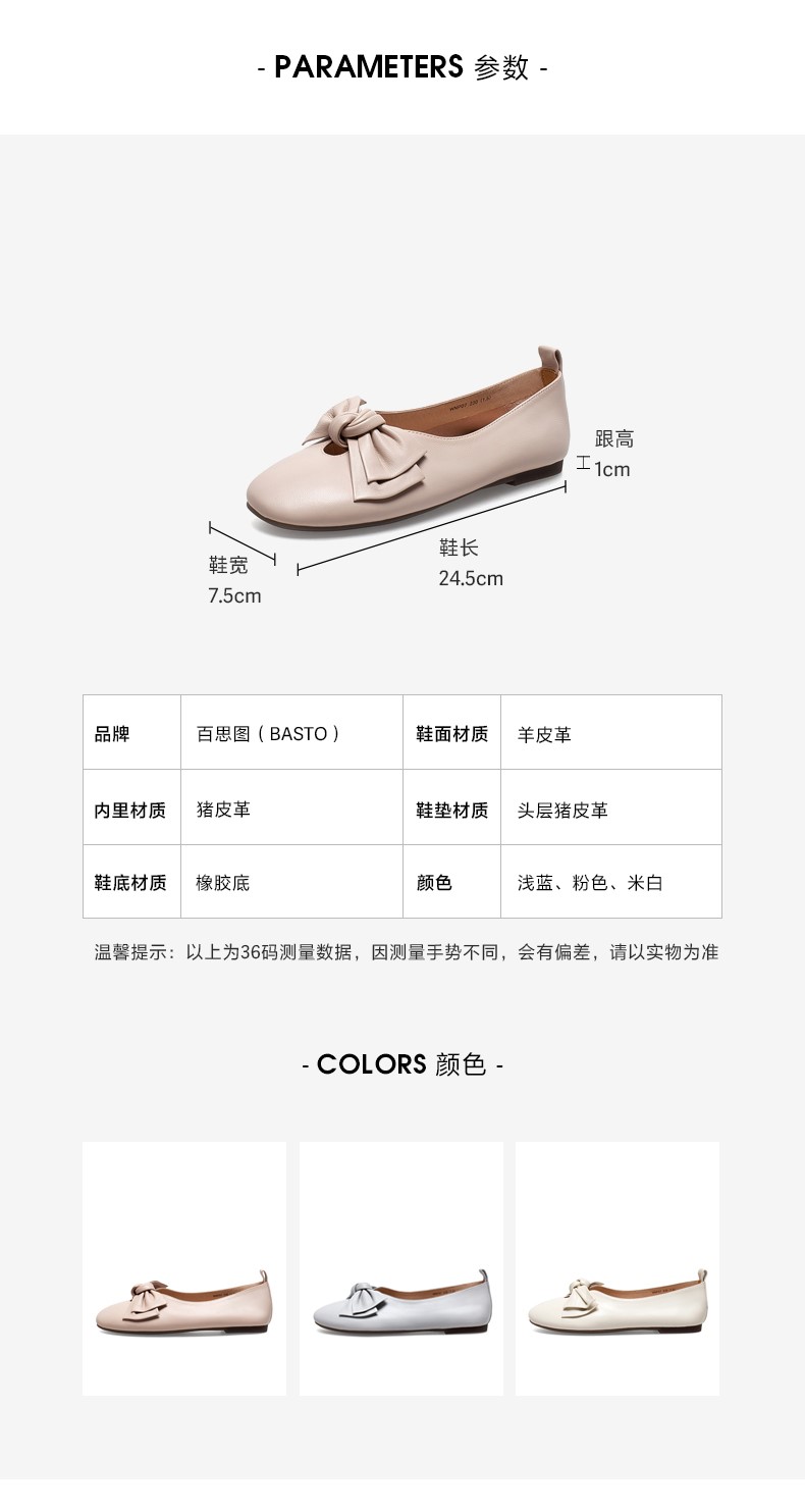 | 鞋面材质:羊皮革 | 流行元素:蝴蝶结 | 参考鞋长(女):24.5CM | 参考鞋宽(女):7.5CM | 闭合方式:套脚 |