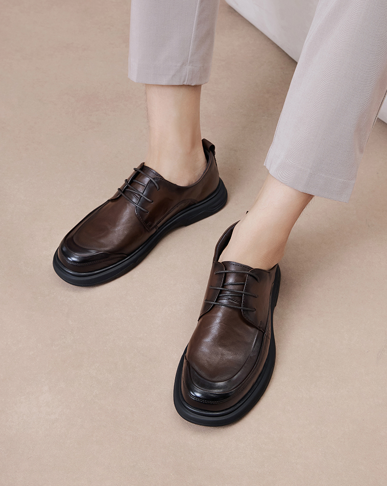 | 内增高:无 | 鞋跟形状:厚底 | 鞋面材质:牛皮革 | 流行元素:纯色 | 闭合方式:系带 |