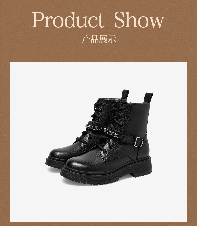 | 鞋底材质:橡胶底 | 靴筒内里材质:PU革 | 内增高:无 | 鞋面材质:牛皮革 | 闭合方式:系带侧拉链 |