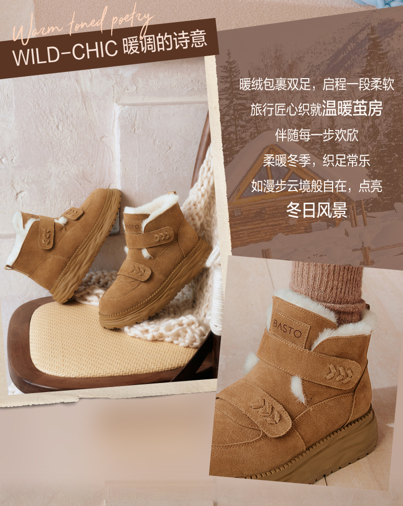| 参考鞋宽(女):10.5CM | 风格:休闲 | 鞋面内里材质:人造长毛绒 | 色系:棕色 | 跟高数值:4.5CM |