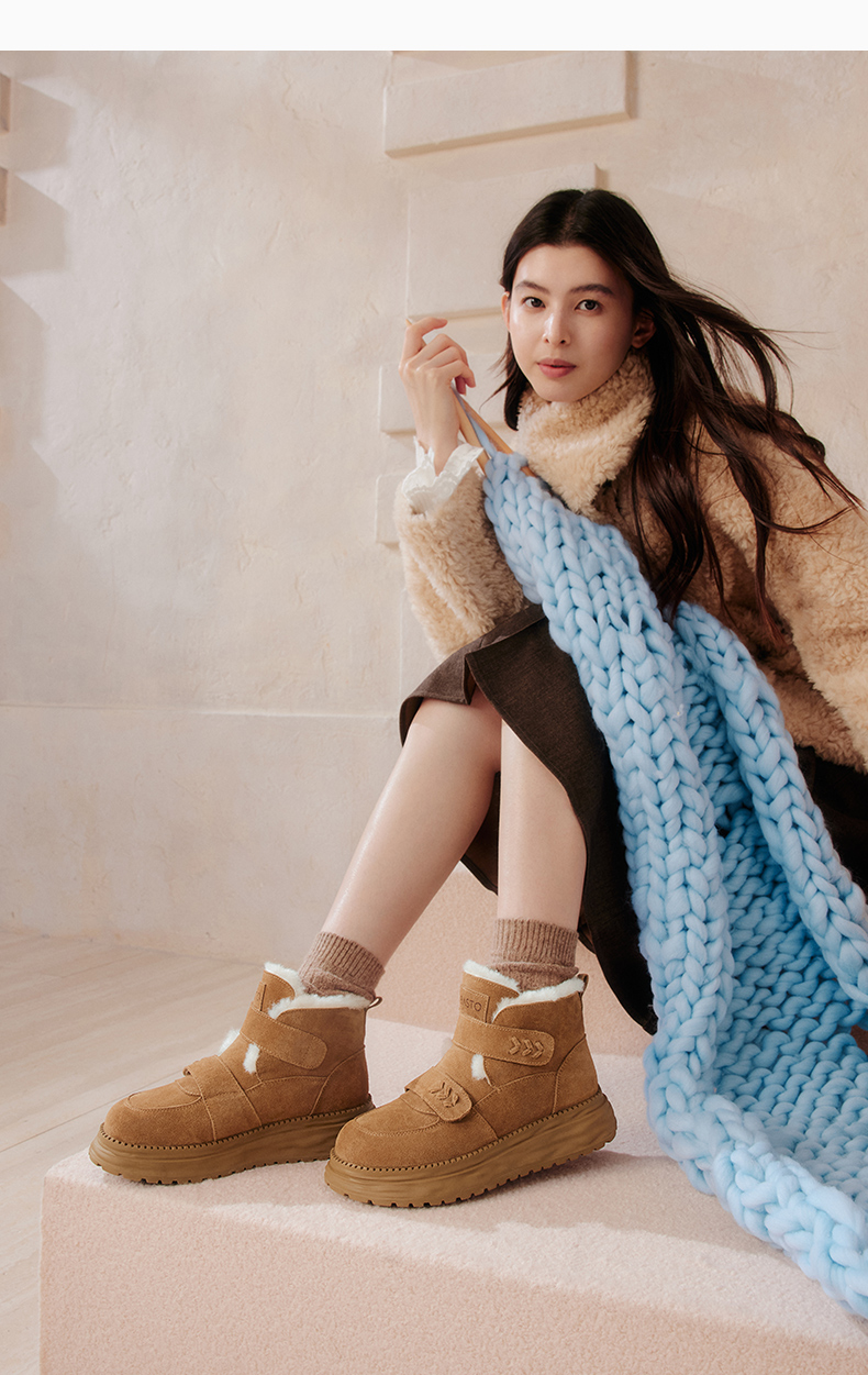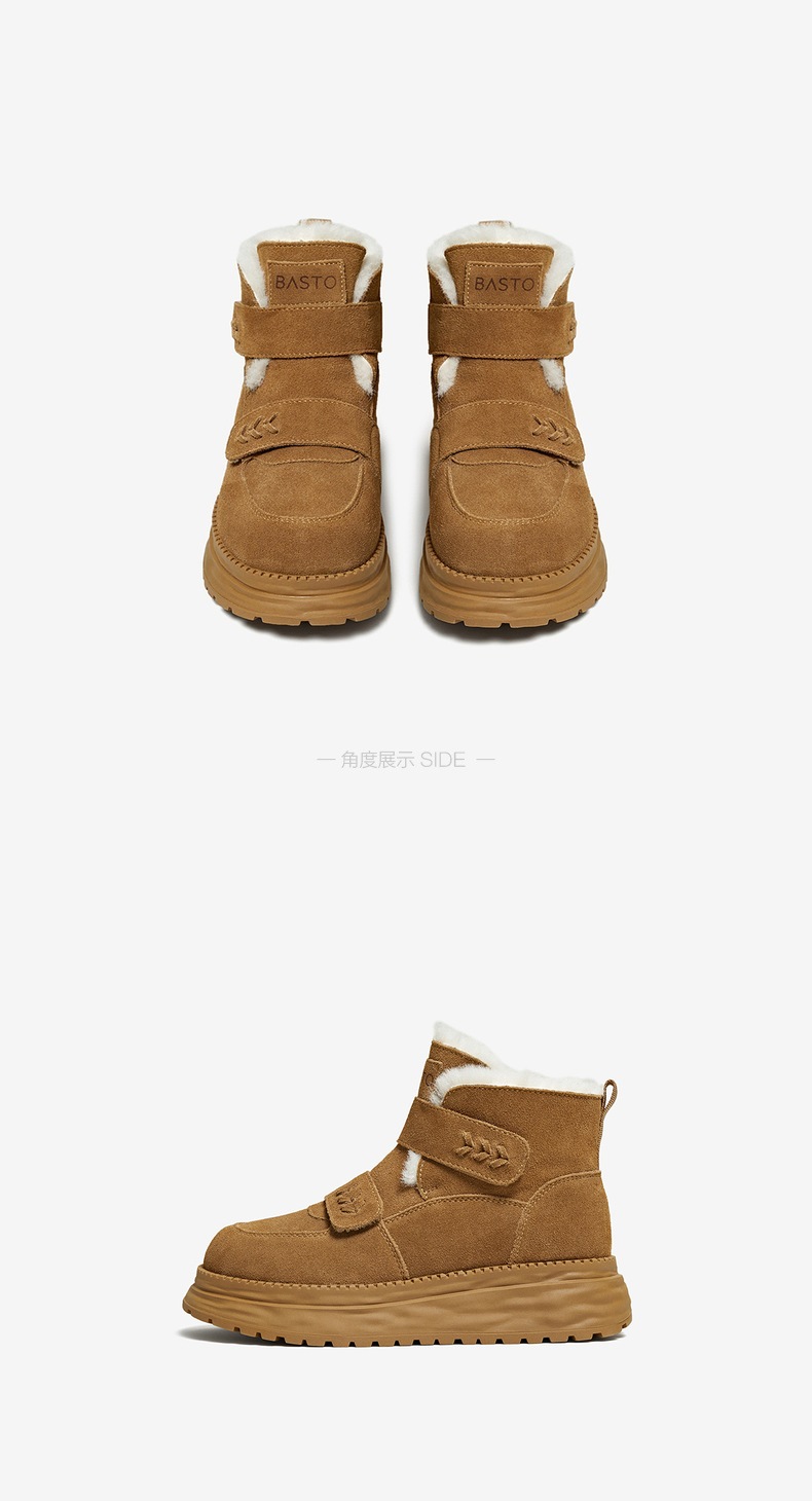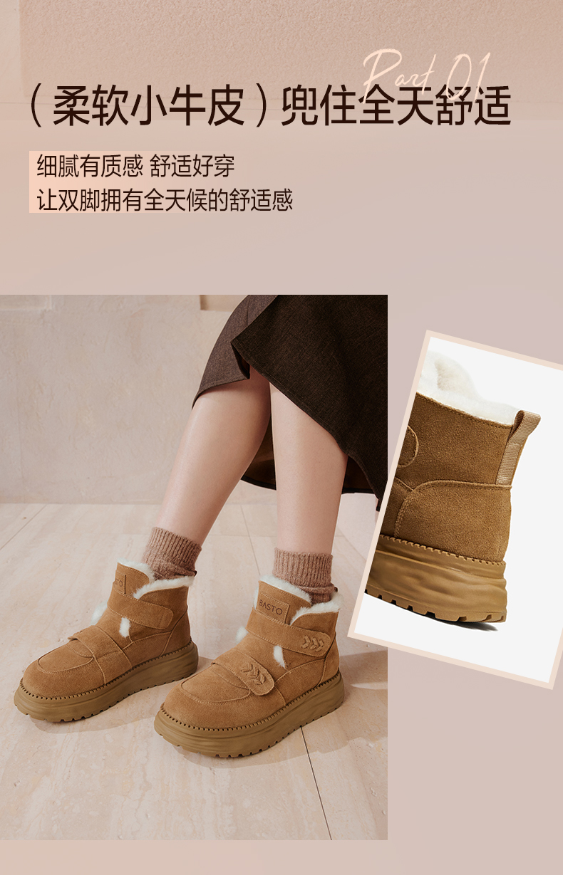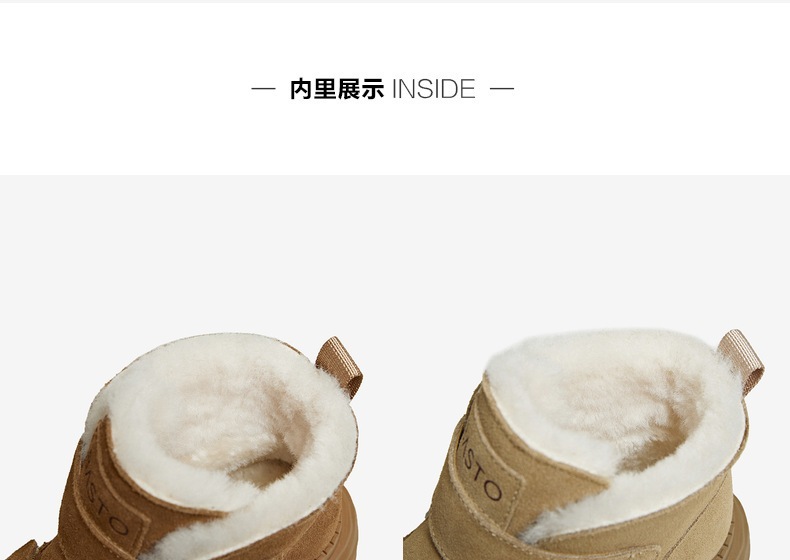 | 帮面材质:牛剖层革 | 配跟:无 | 靴筒口围:30CM | 上市时间:2025年冬季 | 鞋类流行款式:雪地靴 |