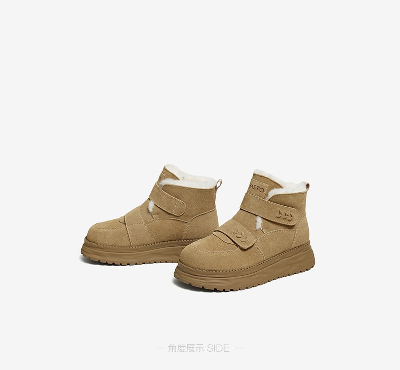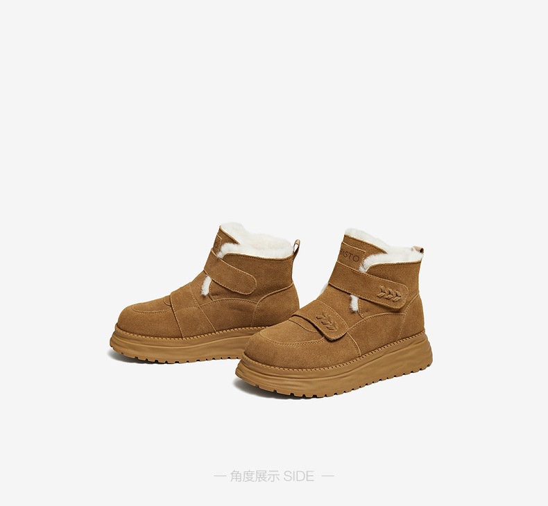 | 鞋底材质:橡胶底 | 靴筒内里材质:人造长毛绒 | 内增高:无 | 鞋面材质:牛剖层皮革 | 闭合方式:魔术贴 |