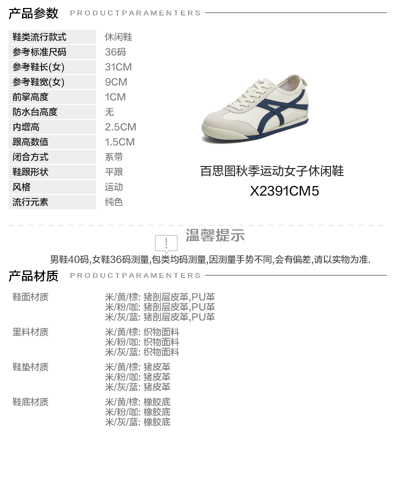 | 鞋帮:低帮 | 鞋底材质:橡胶底 | 内增高:2.5CM | 鞋面材质:PU革猪剖层皮革 | 闭合方式:系带 |