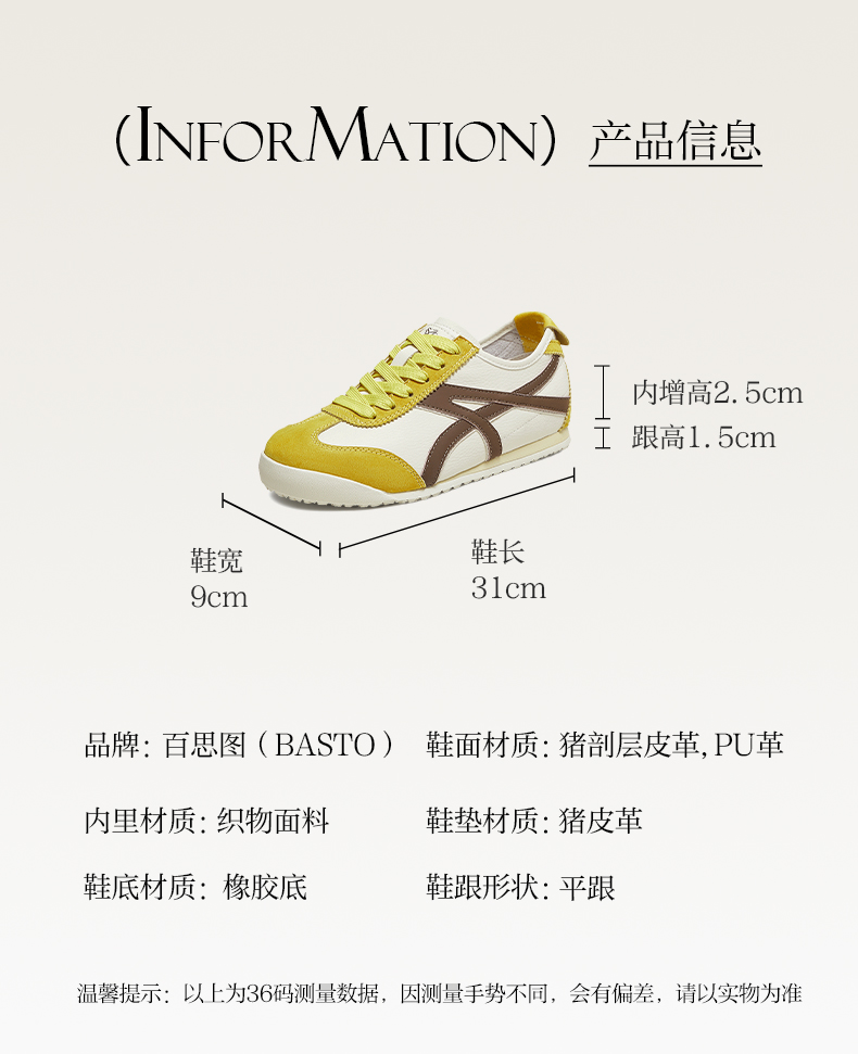 | 鞋帮:低帮 | 鞋底材质:橡胶底 | 内增高:2.5CM | 鞋面材质:PU革猪剖层皮革 | 闭合方式:系带 |