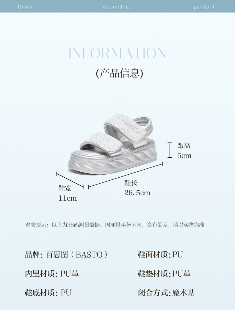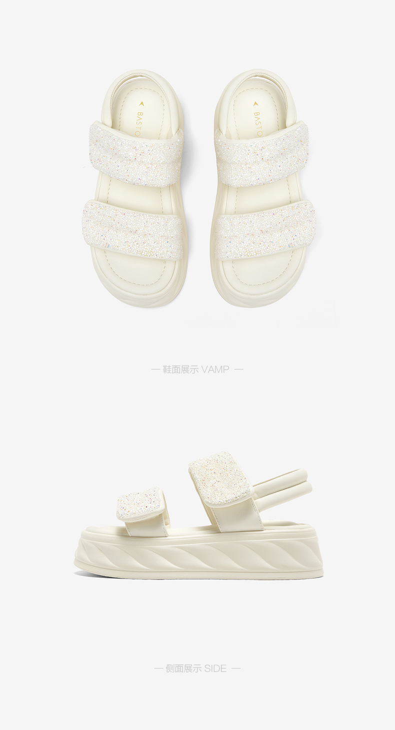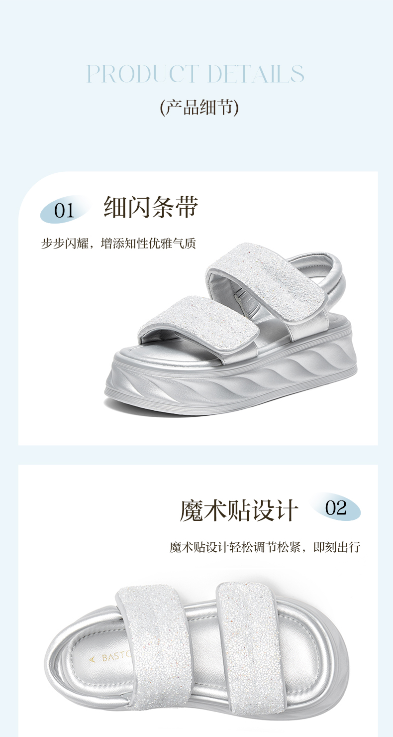 | 渠道划分:线下同步 | 前掌高度:4CM | 皮质特征:PU | 防水台高度:无 | 销售季:2024年夏季 |