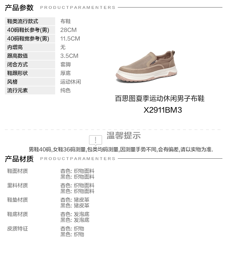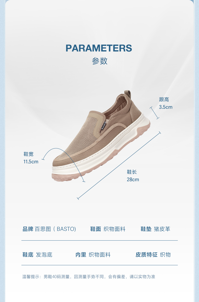 | 40码鞋长参考(男):28CM | 鞋帮:低帮 | 鞋头款式:圆头 | 鞋底材质:发泡底 | 鞋面图案:纯色 |