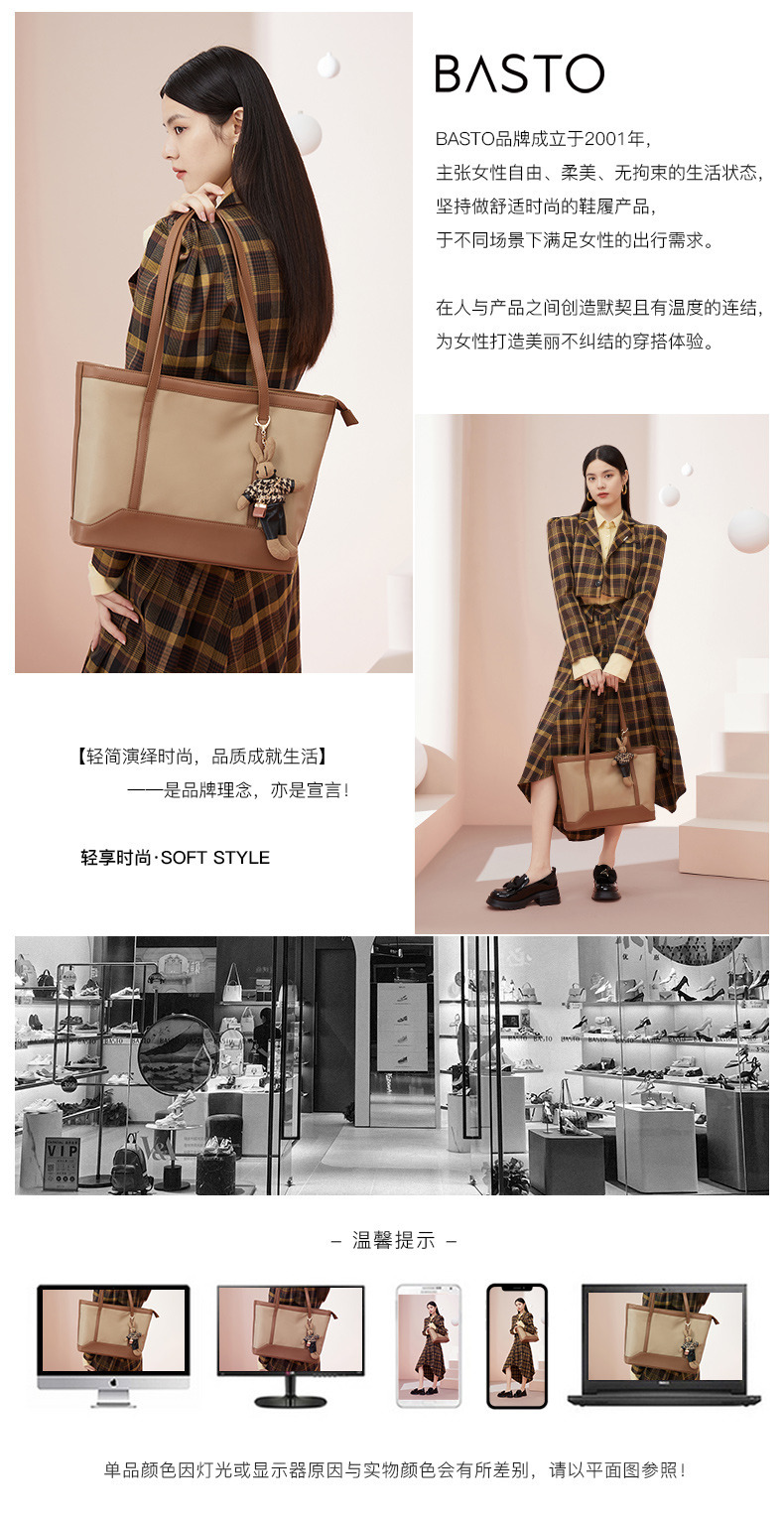 BASTO(百思图),品牌拥有17年历史,秉承优雅、甜美、清新的设计理念,主张“好嫁风”的产品风格,将甜美俏丽的少女情怀融合优雅气质的时尚品味,塑造出唯美优雅、受欢迎的女鞋款式。主打以女性温柔与亲和力为特色的流行时尚产品,糅合雅致又富有亲和力的裸粉色调,淑媛端庄、清新甜美。目前品牌已开设线下门店达1400多家。