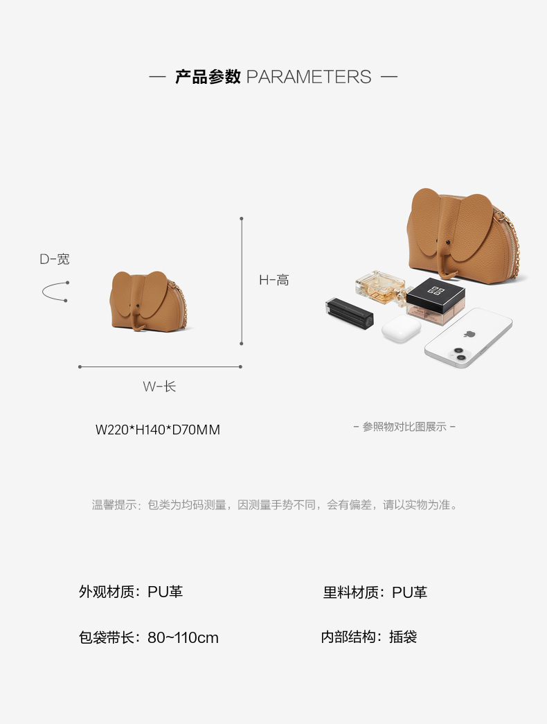 | 包袋大小:小(160mm≤最宽<230mm) | 箱包图案:纯色无图案 | 手柄:无 | 箱包外袋种类:立体袋 | 面料材质:PU |