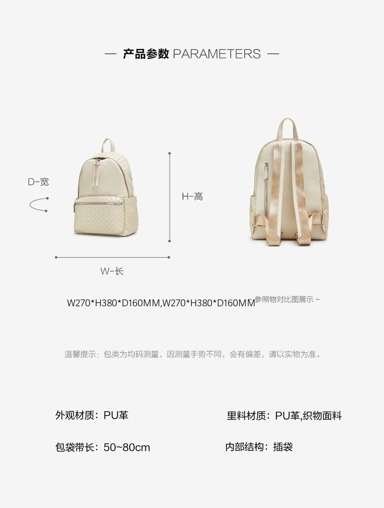 | 流行元素:纯色 | 包的规格:W270*H380*D160MMW270*H380*D160MM | 内部结构:插袋 | 背带方式:双肩 | 风格:OL通勤 |