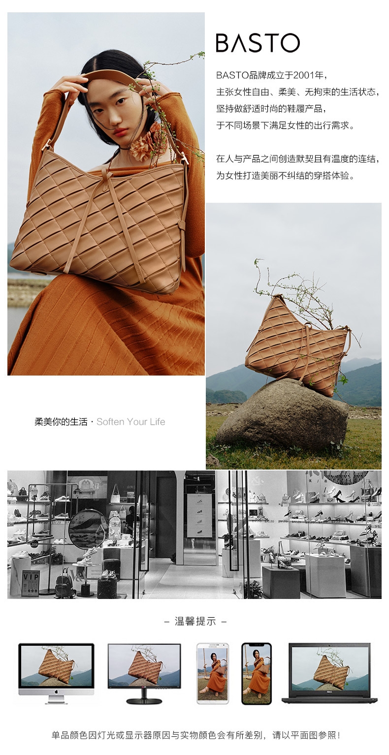 BASTO(百思图),品牌拥有17年历史,秉承优雅、甜美、清新的设计理念,主张“好嫁风”的产品风格,将甜美俏丽的少女情怀融合优雅气质的时尚品味,塑造出唯美优雅、受欢迎的女鞋款式。主打以女性温柔与亲和力为特色的流行时尚产品,糅合雅致又富有亲和力的裸粉色调,淑媛端庄、清新甜美。目前品牌已开设线下门店达1400多家。