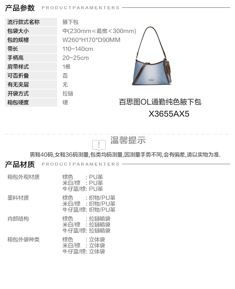 | 风格:OL通勤 | 年份:2025年 | 色系:蓝色 | 适用场景:通勤 | 流行款式名称:腋下包 |