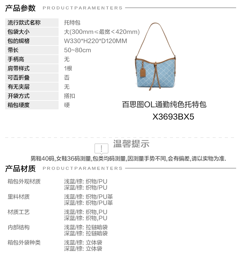 百思图2025夏新款商场同款时尚潮流大容量托特包单肩包女X3693BX5