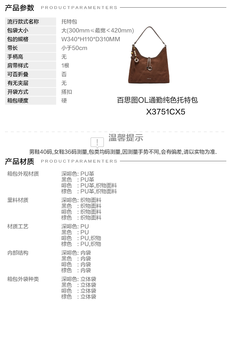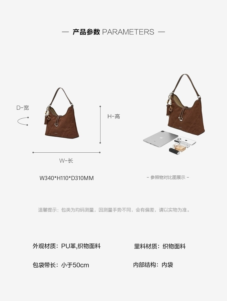 | 里料材质:织物面料 | 手柄高:无 | 上市时间:2025年秋季 | 款式季节:秋季 | 材质工艺:织物PU |