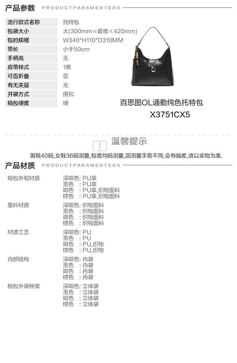 | 里料材质:织物面料 | 手柄高:无 | 上市时间:2025年秋季 | 款式季节:秋季 | 材质工艺:PU |