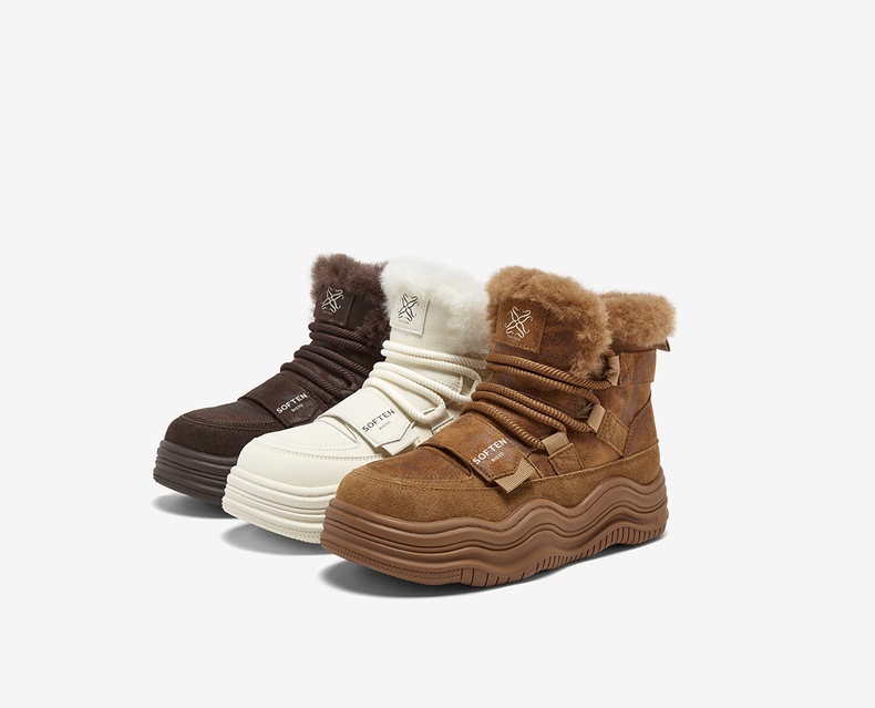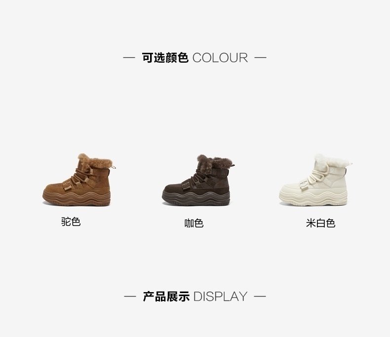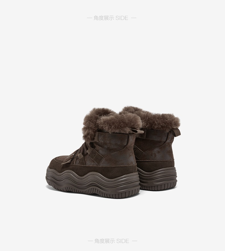 | 参考鞋宽(女):10.5CM | 风格:休闲 | 鞋面内里材质:人造长毛绒 | 色系:棕色 | 跟高数值:4.5CM |