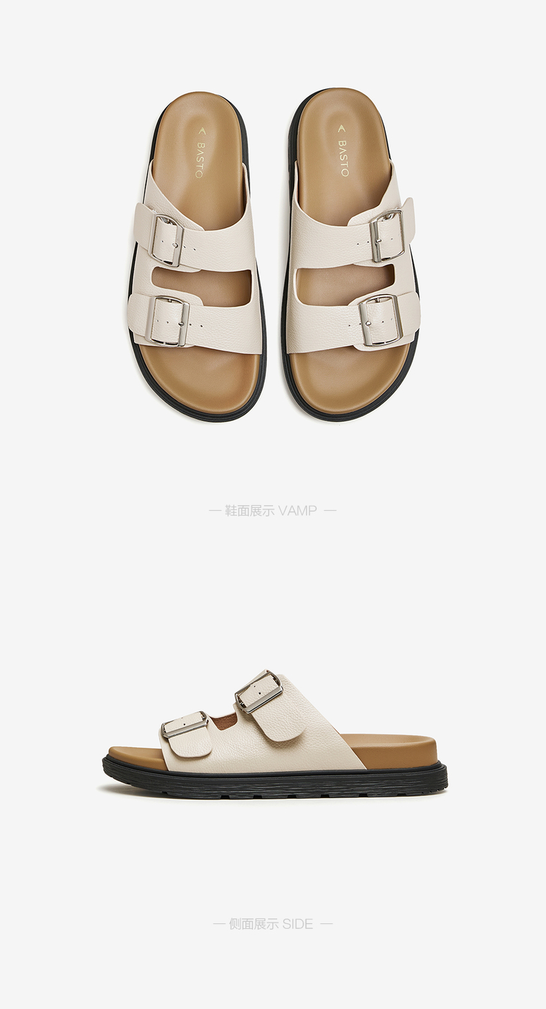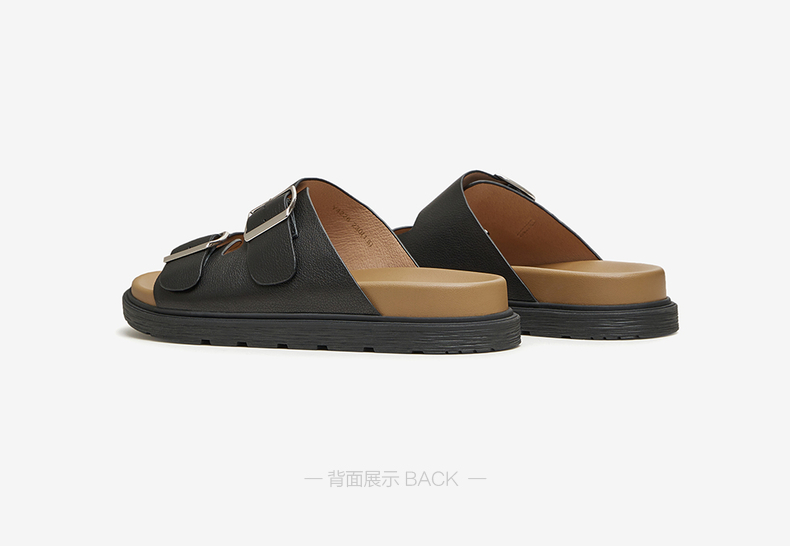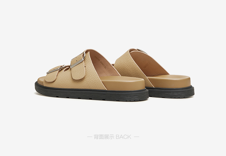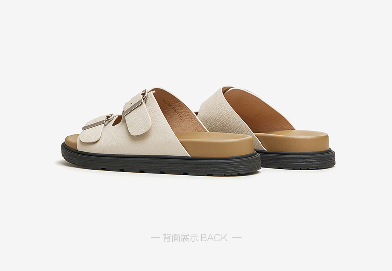 | 鞋类流行款式:拖鞋 | 鞋头款式:露趾 | 执行标准:皮凉鞋GB/T22756-2017 | 跟高范围:中跟鞋(3-5CM) | 鞋面图案:纯色 |