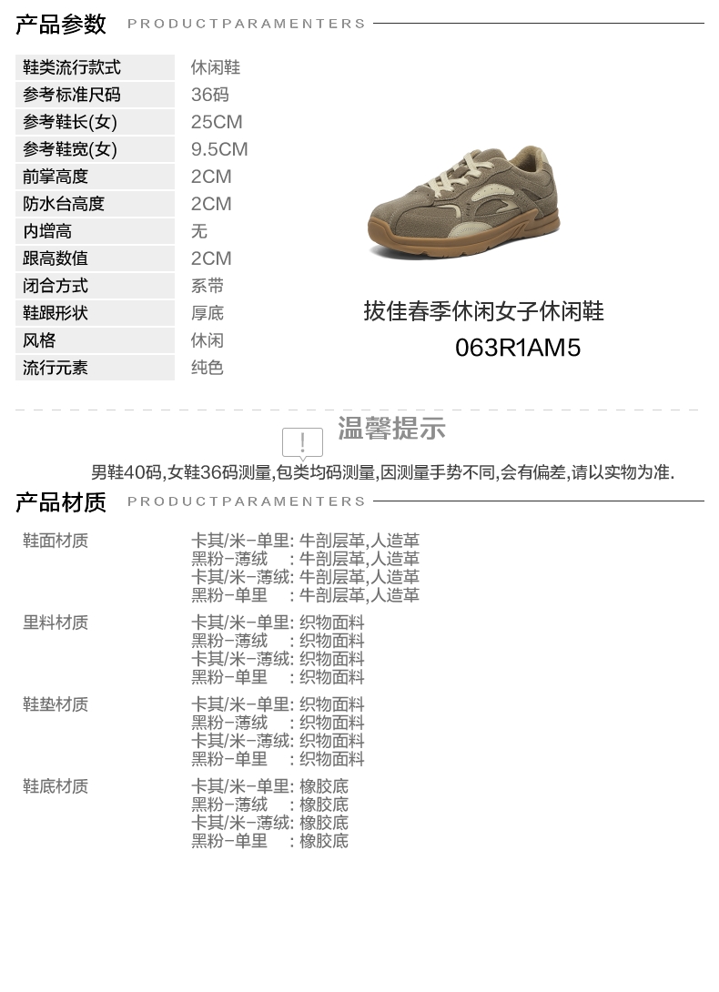 | 年份:2025年 | 色系:灰色 | 参考标准尺码:36码 | 跟高数值:2CM | 性别:女子 |
