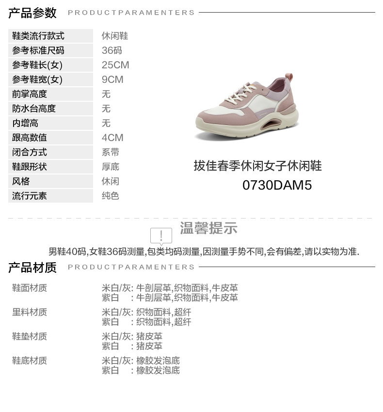 | 上市时间:2025年春季 | 鞋类流行款式:休闲鞋 | 鞋头款式:圆头 | 跟高范围:中跟鞋(3-5CM) | 鞋面图案:纯色 |