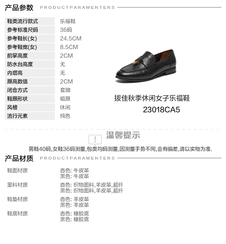 | 鞋垫材质:羊皮革 | 前掌高度:2CM | 鞋类流行款式:乐福鞋 |