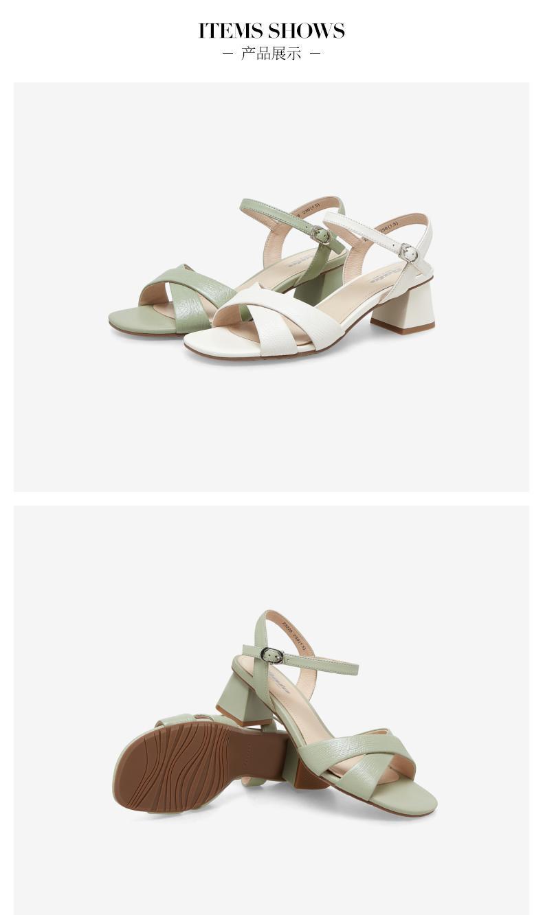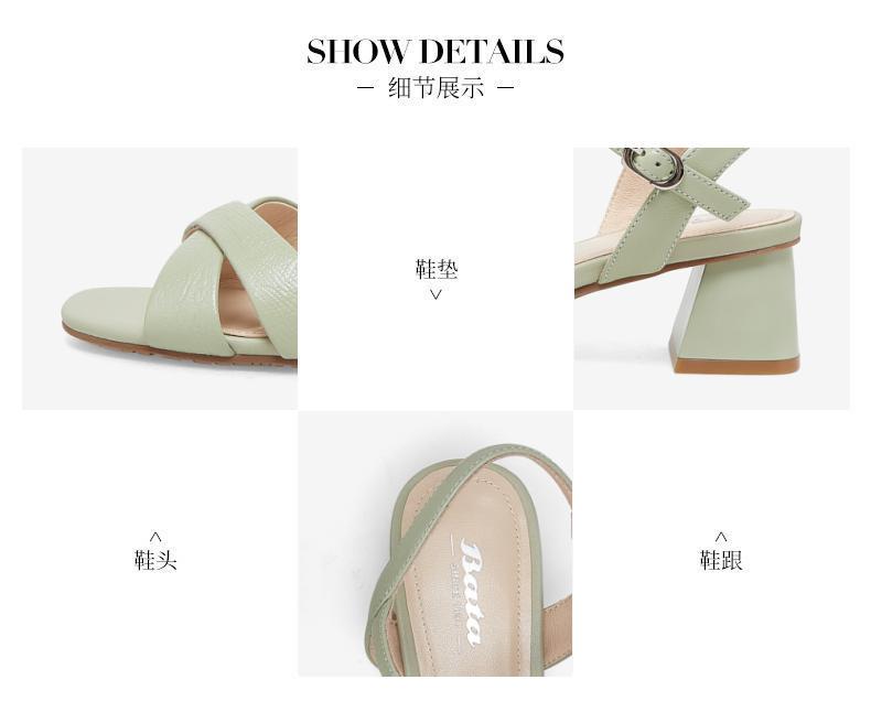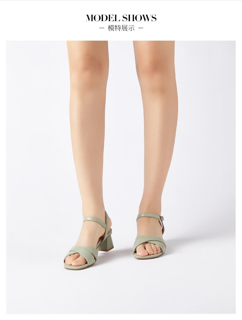 | 鞋头款式:露趾 | 鞋底材质:橡胶底 | 鞋面图案:纯色 | 鞋跟形状:粗跟 | 鞋面材质:羊皮革 |