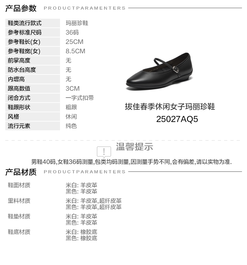 | 所在区域:电子商务 | 配跟:无 | 开口深度:浅口 | 风格分类:玛丽珍鞋 | 上市时间:2025年春季 |