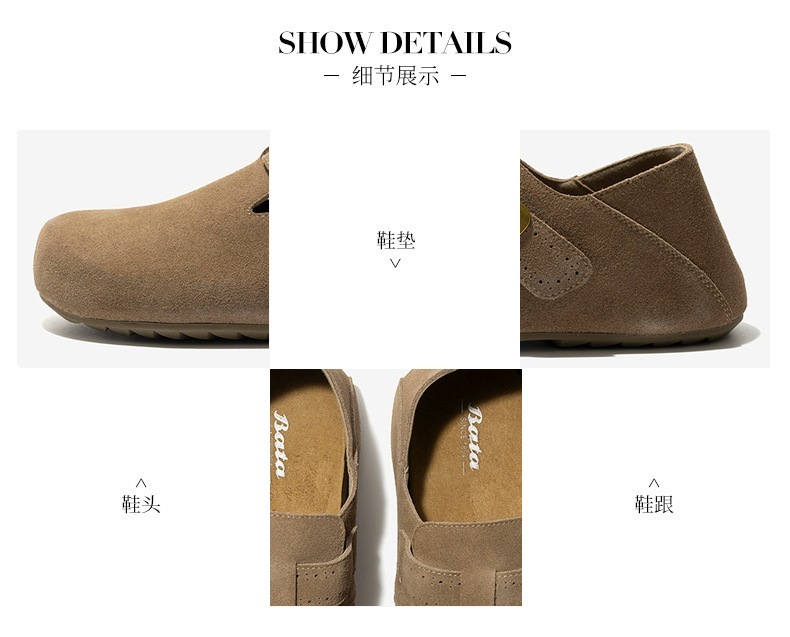 | 内增高:无 | 鞋跟形状:平跟 | 鞋面材质:牛剖层皮革 | 流行元素:纯色 | 闭合方式:套脚 |