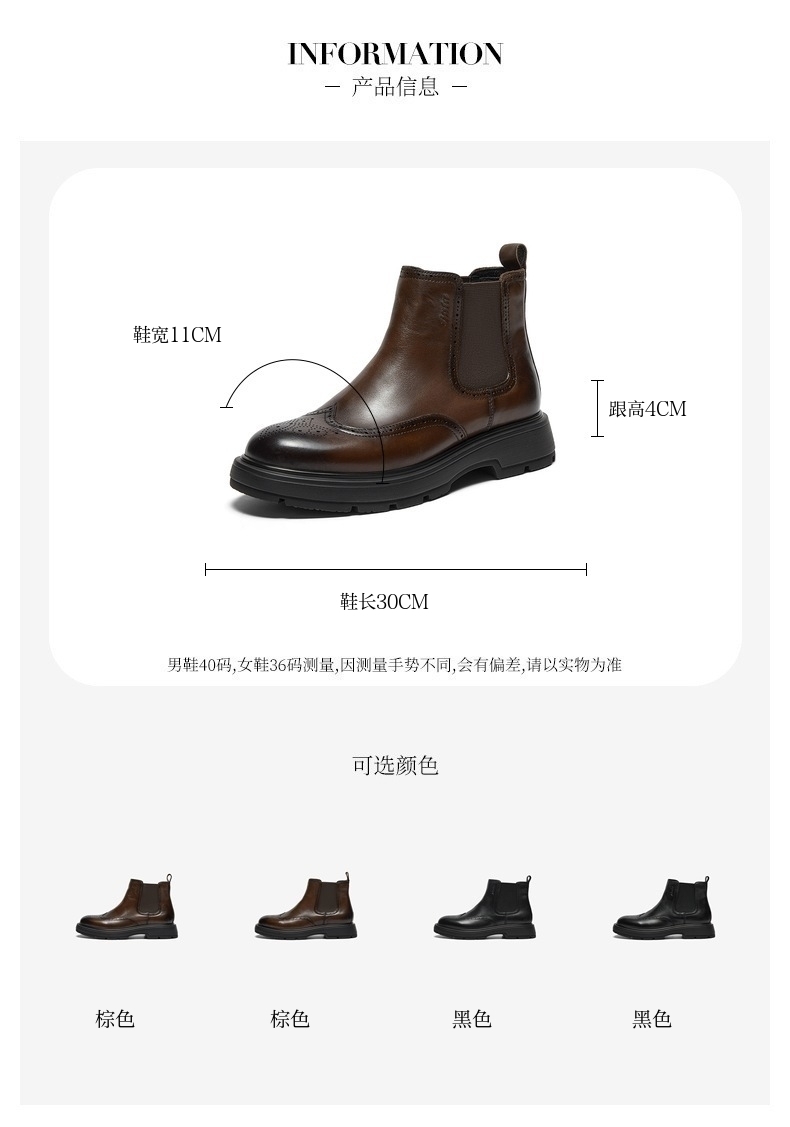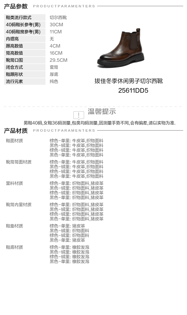 | 闭合方式:套筒 | 40码鞋宽参考(男):11CM | 靴筒口围:29.5CM | 上市时间:2025年冬季 | 鞋类流行款式:切尔西靴 |