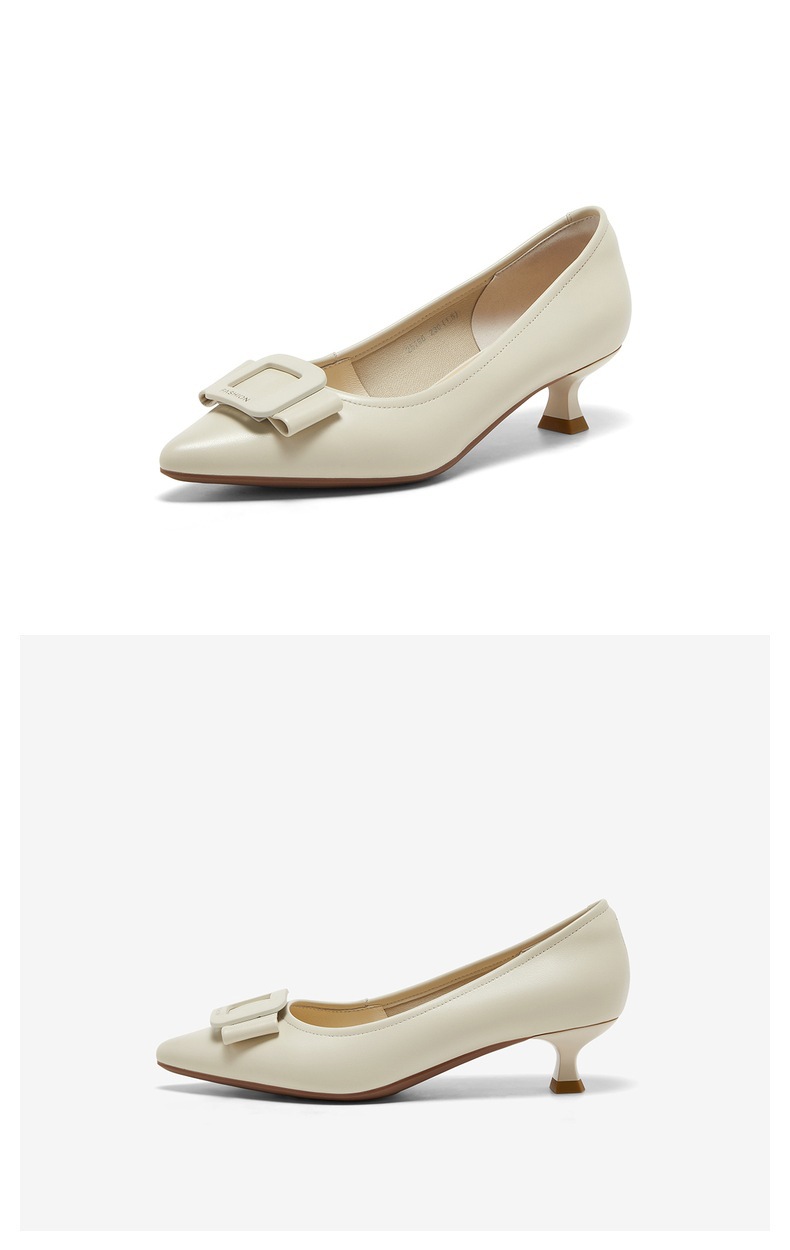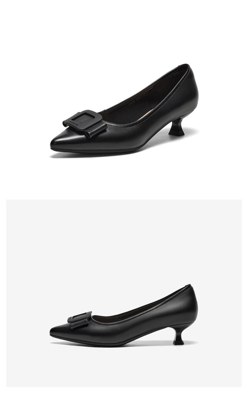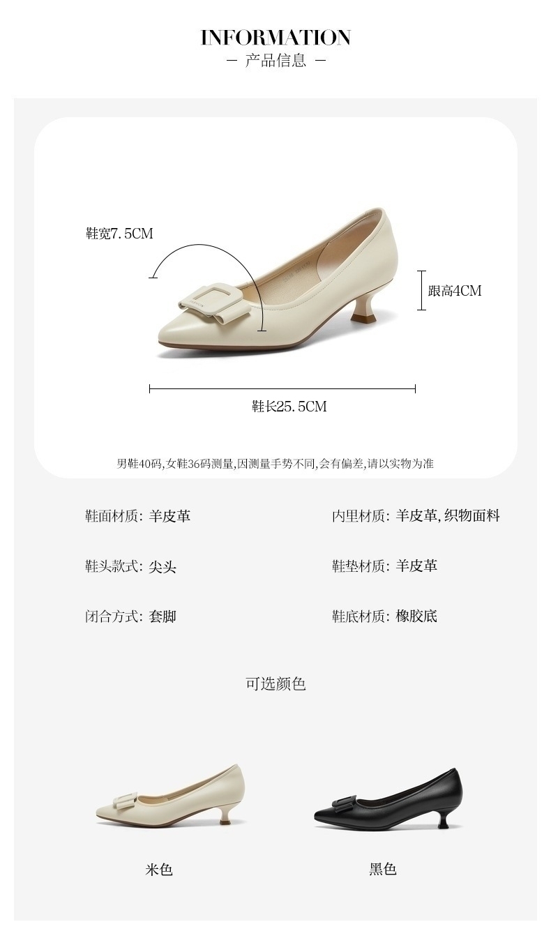| 鞋类流行款式:浅口鞋 | 鞋头款式:尖头 | 跟高范围:中跟鞋(3-5CM) | 鞋面图案:纯色 | 鞋跟形状:马蹄跟 |