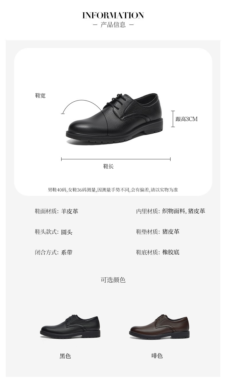 | 风格分类:正装皮鞋 | 上市时间:2025年春季 | 鞋类流行款式:商务正装鞋 | 鞋头款式:圆头 | 跟高范围:中跟鞋(3-5CM) |