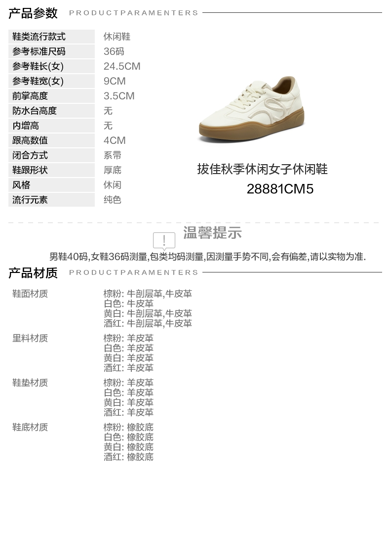 | 鞋跟形状:厚底 | 参考鞋长(女):24.5CM | 流行元素:纯色 | 参考鞋宽(女):9CM | 风格:休闲 |