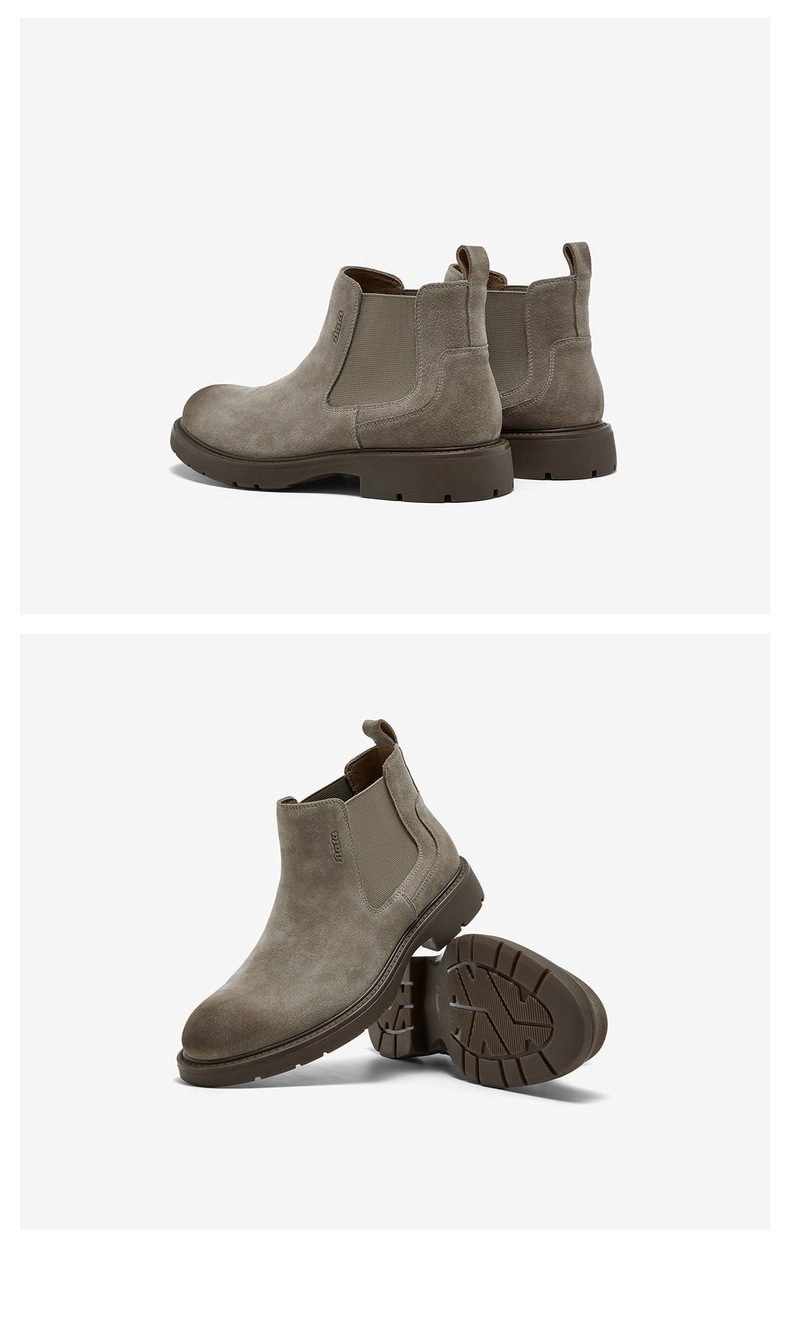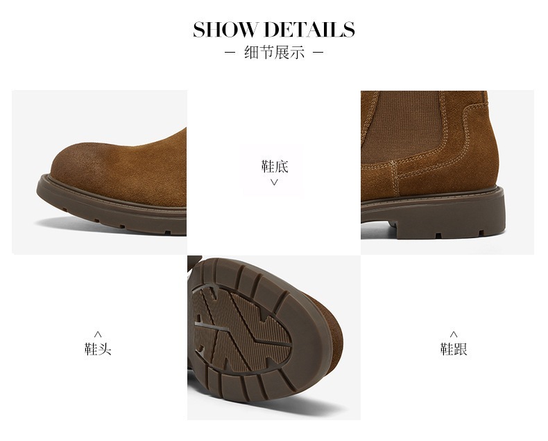 | 跟高数值:3CM | 色系:棕色 | 性别:男子 | 筒高数值:11CM | 靴筒筒面材质:织物面料牛剖层革 |