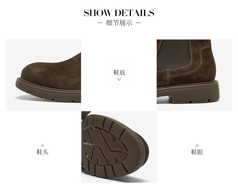 | 跟高数值:3CM | 色系:卡其 | 性别:男子 | 筒高数值:11CM | 靴筒筒面材质:织物面料牛剖层革 |